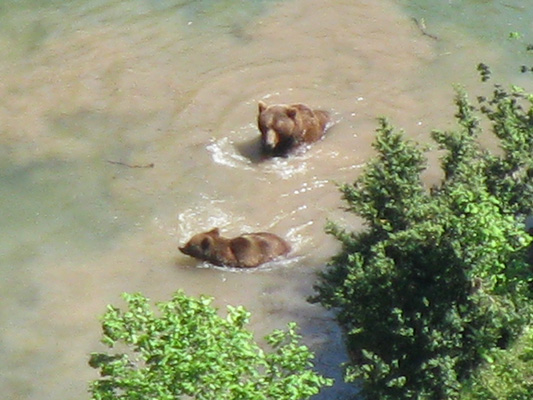 y aquí tomando un bocata mientras observamos a los osos jugando en el agua 250 metros debajo de nosotros