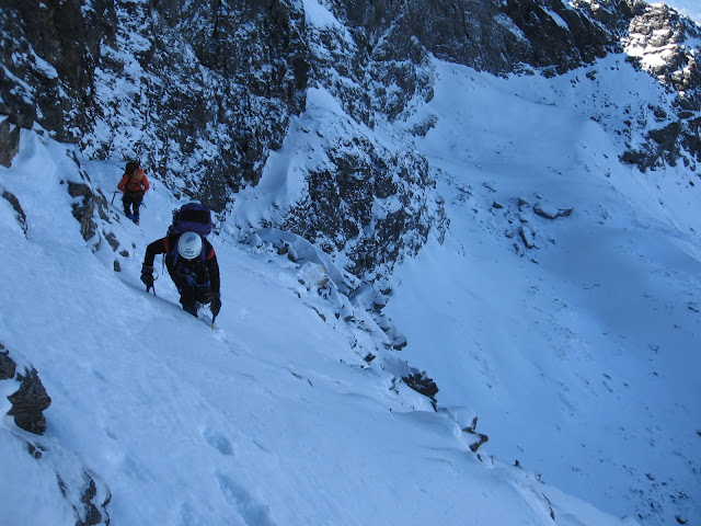Juan... si es cierto qeu un resbalón y adios... pero vaya que igual que en la norte del mula, en el espolón de la alcazaba, en la arista del cartujo... ta claro que no es un sitio pa novatos... pensaba que lo había dejao claro (joer que me explico mu mal, lo siento)....