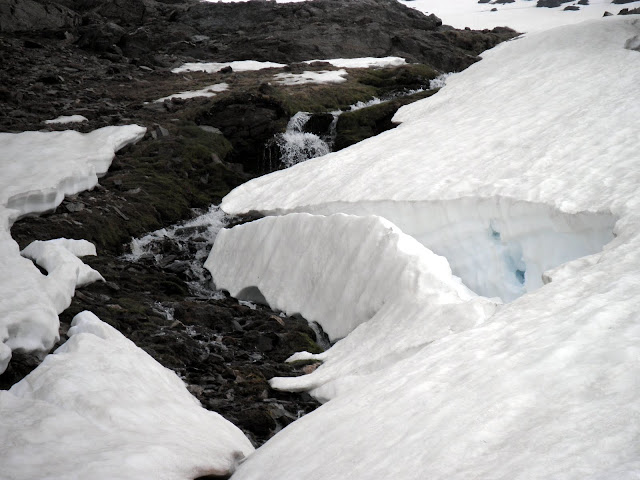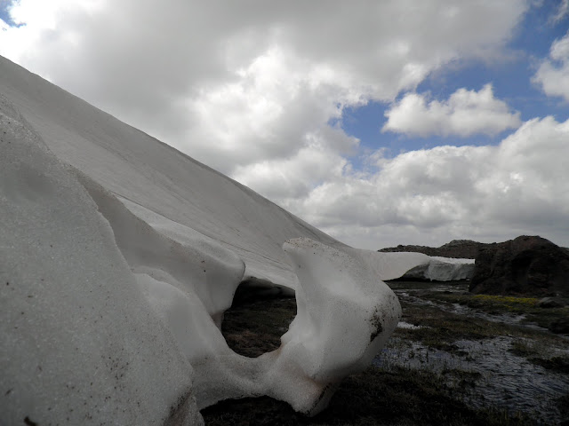 Nuestro primer encuentro con la nieve. Nos producía cierto respeto al principio, así que optamos por rodearla.
