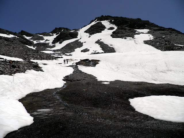 Aunque se ha ido muchísima en el ultimo mes y medio desde que estuve allí, bastante nieve queda aun, con estos calores