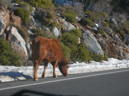Una vaca o muchas vacas sueltas en una carretera son un peligro para la circulación y para las personas. Y ahora en invierno hay más porque va a lamer la sal que echan para que no se forme hielo. El año pasado o el anterior, tuvimos que parar un rato, porque un rebaño de machos de cabras monteses salieron de Fuente Alta y se pusieron tranquilamente a lamer el asfalto mientras los uebanitas les hacían fotos