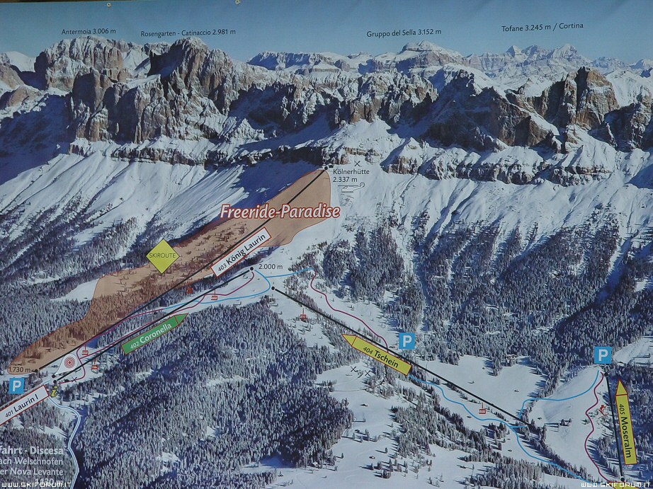 Carezza digamos que es parte de Val di fassa... auqnue esta retiraete... Yo que tu me centraba en conocer cosas mas interesantes... con todas las estaciones de la sella ronda mas Cortina tienes para mas de un mes... Esto lo ponia para los ya "iniciados". Tu no te preocupes birindeli... que lo vas a ver todo a las mil maravillas...