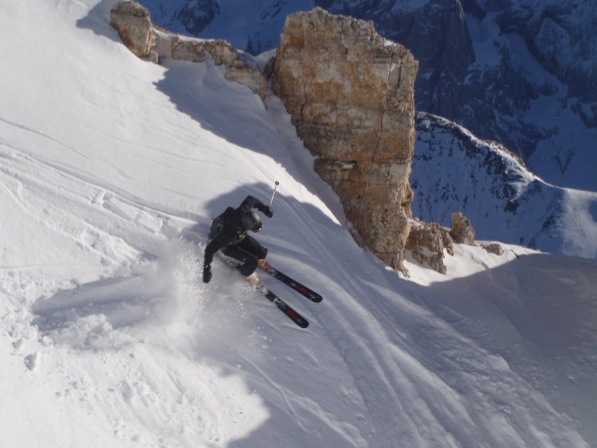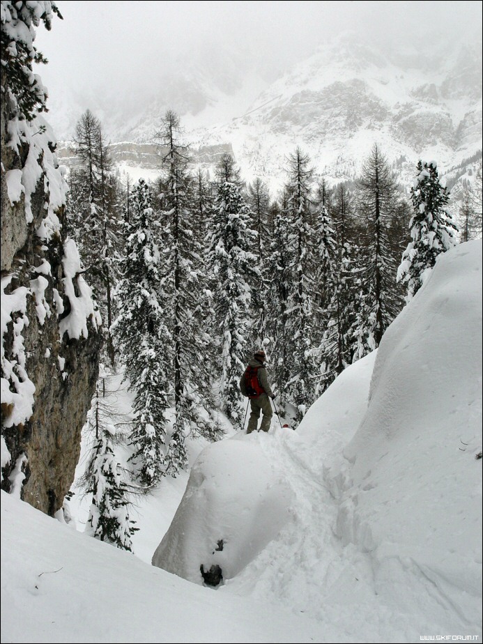 Etaba echando un vistazo a los itinerarios freeride, y he visto este desde el passo Valparola a Armentarola... pone que es facil... no estaria de mas hacerlo con unos fat...no?