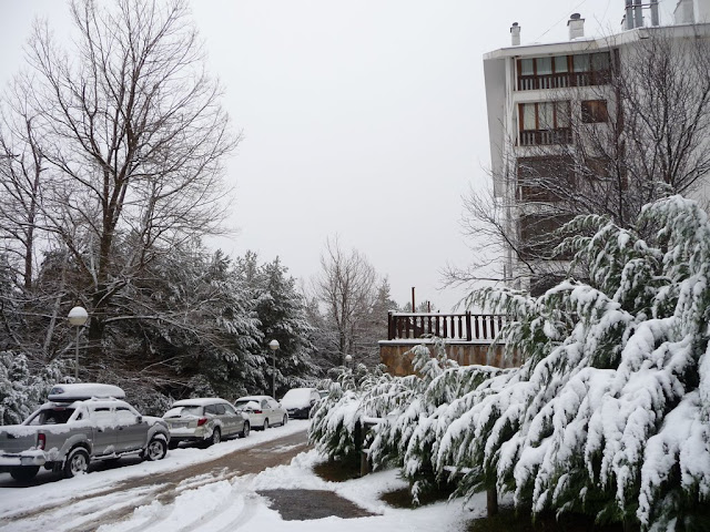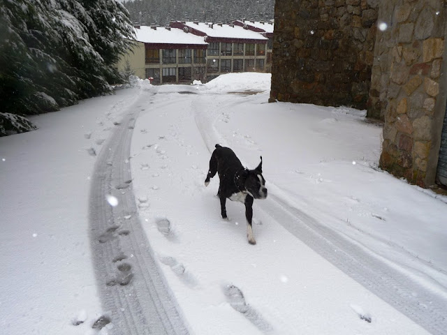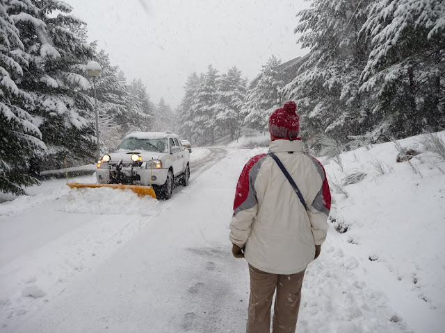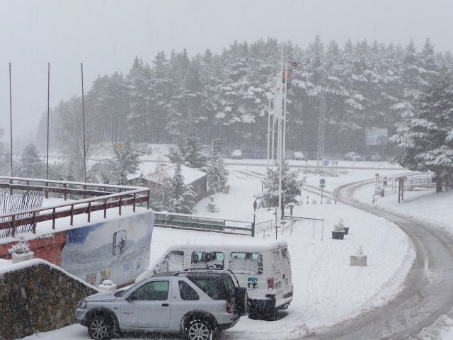 Respecto a la quitanieves: efectivamente, es un vehículo 'particular', propiedad de la mancomunidad de La Pinilla. Este finde nos ha hecho un servicio estupendo quitando nieve y esparciendo sal. El chico que lo conducía estaba como niño con zapatos nuevos, entusiasmado con el tema y venga a quitar nieve p'arriba y p'abajo. Hizo falta, la verdad, porque no paró de nevar en todo el día y la carretera siempre se volvía a poner blanca al cabo de un rato. Se agradece cantidad este nuevo servicio.