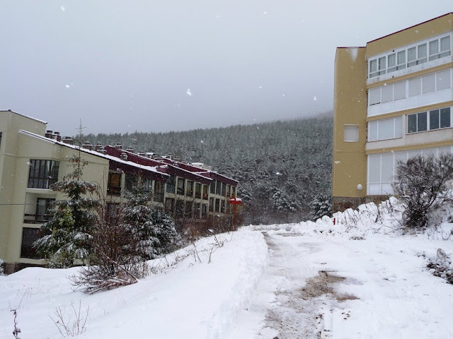 Sábado soleado. La previsión anunciaba nevadas para el domingo pero todo estaba por ver. Así se veía la estación desde la carretera: