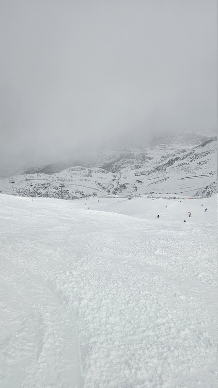 Un par de fotos (l a verdad que hoy hice muy pocas), de las vistas del Torres, desde el atasco en la carretera 😂, y otras dos en pistas, la nieve muy bien las 3 primeras horas 😊