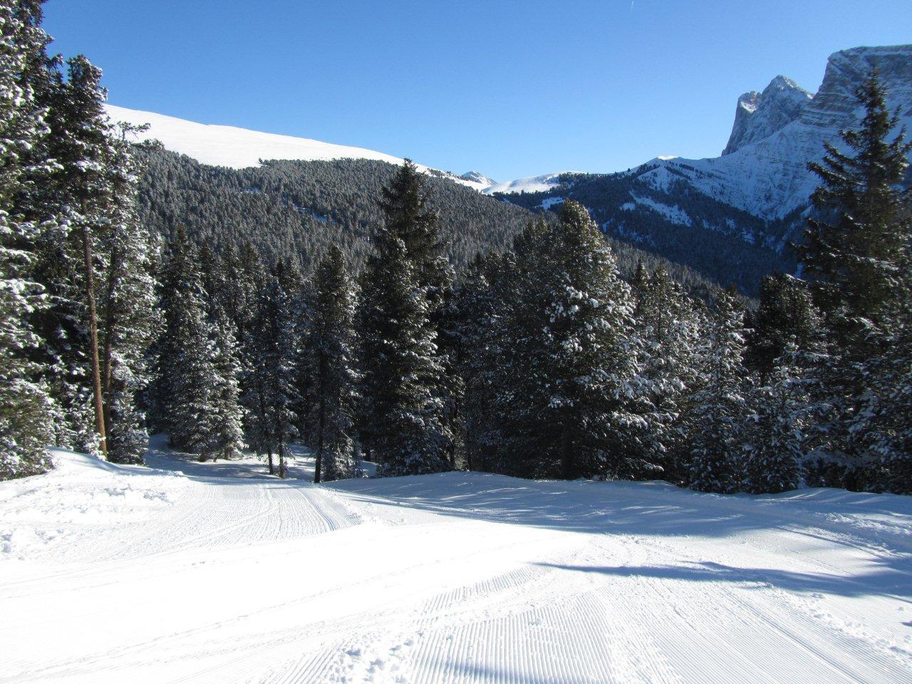 La pista Rasciesa es una pista apartada, la única que sale desde el funicular de Raschötz, y te deja en Furnes (donde llega el primer telecabina que sube desde Ortisei para luego pillar el segundo que te deja en Seceda.